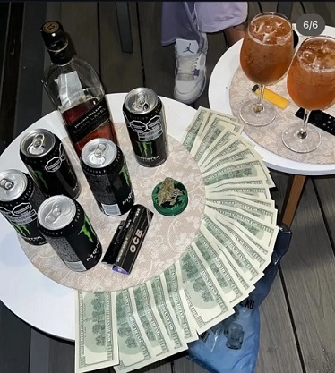 Según un posteo de X (ex-Twitter) que dio visibilidad a esta escena, el futbolista recibió la visita de un amigo cantante llamado "El menor" y grabó un videoclip donde posaron con marihuana, alcohol y dólares.