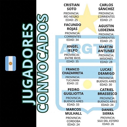 Cristian Soto - Río Negro (25) Facundo Rojas - Corrientes (34) CAPITÁN Ángel Ielpo - Entre Ríos (35) Franco Chazarreta - Tucumán (22) Pedro Gugliotta - Buenos Aires (33) Marcos Mulhall - Córdoba (24) Carlos Sánchez - Corrientes (21) Agustín Ledezma - Corrientes (25) Martín Antúnez - Misiones (28) Lucas Deamigo - Buenos Aires (30) Catriel Brassesco - Buenos Aires (24) Daniel Sierra - Santiago del Estero (26)