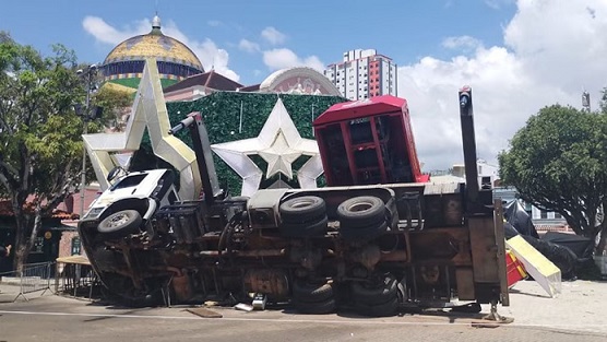 El accidente ocurrió durante la instalación de la estructura festiva en la plaza de la capital del estado de Amazonas. Autoridades hallaron irregularidades en el operativo