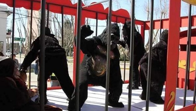 La Guardia Urbana se acercó a un parque donde chicos se sacaban fotos con gorilas y tigres que eran de mentira.