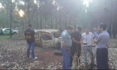 La Policía no descarta que el vehículo sea de César Miño y César Quintana que son buscados hace casi un mes. Fue localizado sin motor en un bosque en el límite con laprovincia de Misiones.